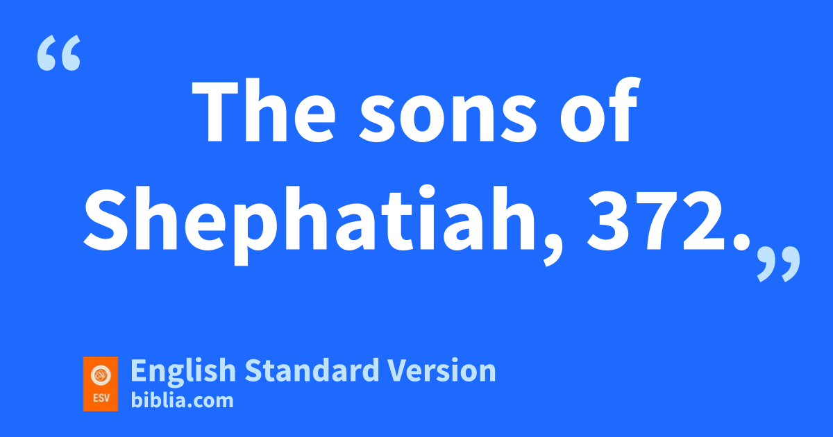 The number of the men of the people of Israel: 8 the sons of Parosh, 2,172. 9 The sons of Shephatiah, 372. 10 The sons of Arah, u652. 11 The sons of Pahath-moab, namely the sons of Jeshua and Joab, 2,818. 12 The sons of vElam, 1,254. 13 The sons of Zattu, 845. 14 The sons of Zaccai, 760. 15 The sons of wBinnui, 648. 16 The sons of Bebai, 628. 17 The sons of Azgad, 2,322. 18 The sons of Adonikam, 667. 19 The sons of Bigvai, 2,067. 20 The sons of Adin, 655. 21 The sons of Ater, namely of Hezekiah, 98. 22 The sons of Hashum, 328. 23 The sons of xBezai, 324. 24 The sons of Hariph, 112. 25 The sons of yGibeon, 95. 26 The men of Bethlehem and Netophah, 188. 27 The men of Anathoth, 128. 28 The men zof Beth-azmaveth, 42. 29 The men of aKiriath-jearim, Chephirah, and Beeroth, 743. 30 The men of Ramah and Geba, 621. 31 The men of Michmas, 122. 32 The men of Bethel and Ai, 123. 33 The men of the other Nebo, 52. 34 The sons of bthe other Elam, 1,254. 35 The sons of Harim, 320. 36 The sons of Jericho, 345. 37 The sons of Lod, Hadid, and Ono, 721. 38 The sons of Senaah, 3,930.