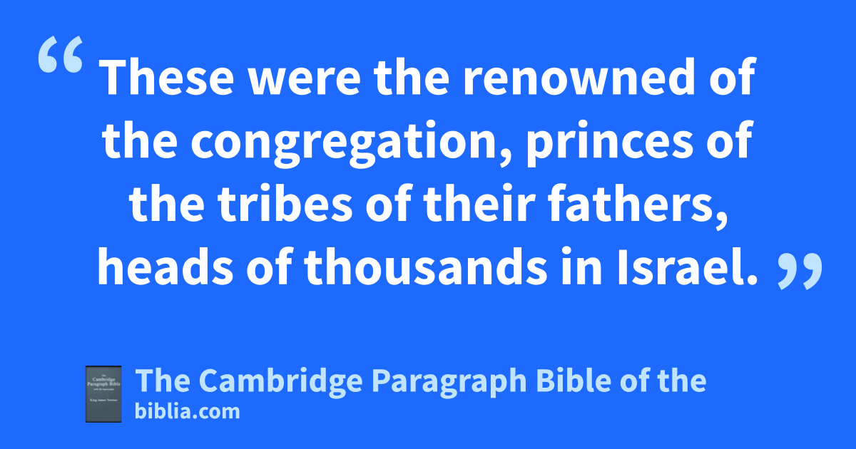 I. * And the Lord spake unto Moses ain the wilderness of Sinai, bin the tabernacle of the congregation, on the first day of the second month, in the second year after they were come out of the land of Egypt, saying, 2 cTake ye the sum of all the congregation of the children of Israel, after their families, by the house of their fathers, with the number of their names, every male by dtheir polls; 3 from twenty years old and upward, all that are able to go forth to war in Israel: thou and Aaron shall number them by their armies. 4 And with you there shall be a man of every tribe; every one head of the house of his fathers.