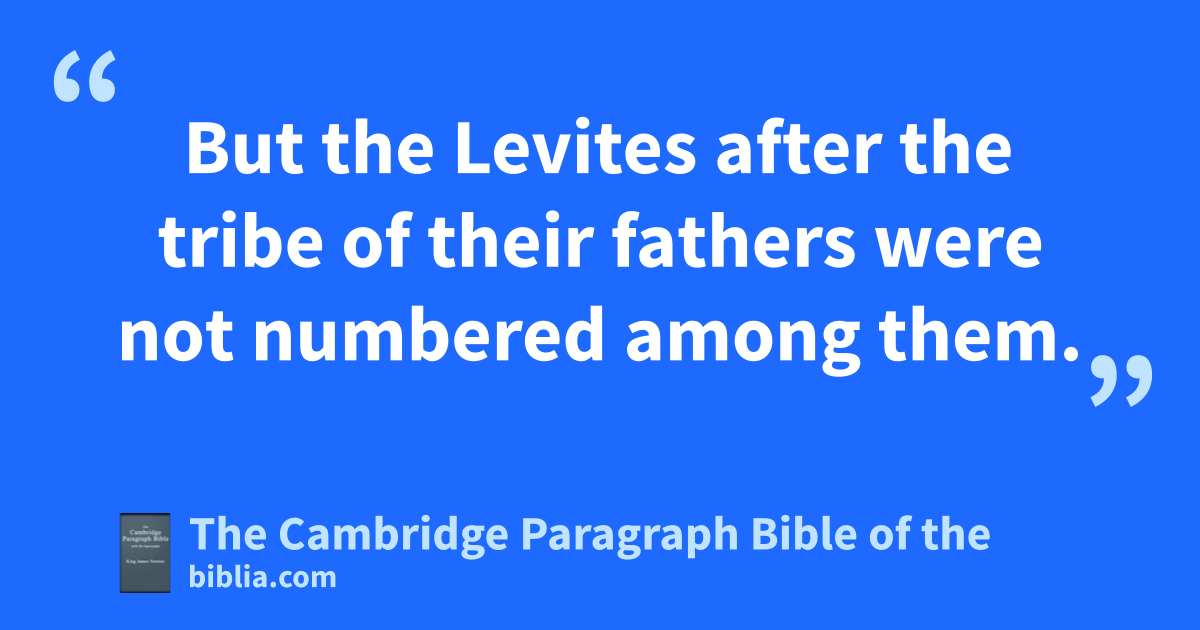 47 But kthe Levites after the tribe of their fathers were not numbered among them. 48 For the Lord had spoken unto Moses, saying, 49 Only thou shalt not number the tribe of Levi, neither take the sum of them among the children of Israel: 50 lBut thou shalt appoint the Levites over the tabernacle of Testimony, and over all the vessels thereof, and over all things that belong to it: they shall bear the tabernacle, and all the vessels thereof; and they shall minister unto it, mand shall encamp round about the tabernacle. 51 nAnd when the tabernacle setteth forward, the Levites shall take it down: and when the tabernacle is to be pitched, the Levites shall set it up: oand the stranger that cometh nigh shall be put to death. 52 And the children of Israel shall pitch their tents, every man by his own camp, and pevery man by his own standard, throughout their hosts. 53 qBut the Levites shall pitch round about the tabernacle of Testimony, that there be no rwrath upon the congregation of the children of Israel: and the Levites sshall keep the charge of the tabernacle of Testimony. 54 And the children of Israel did according to all that the Lord commanded Moses, so did they.