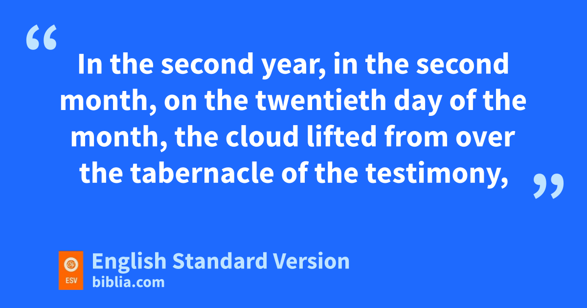 11 In the second year, in the second month, on the twentieth day of the month, lthe cloud lifted from over the tabernacle of the testimony, 12 and the people of Israel mset out by stages from the nwilderness of Sinai. And the cloud settled down in the owilderness of Paran. 13 They set out for the first time pat the command of the Lord by Moses. 14 The standard of the camp of the people of Judah set out qfirst by their companies, and over their company was rNahshon the son of Amminadab. 15 And over the company of the tribe of the people of Issachar was Nethanel the son of Zuar. 16 And over the company of the tribe of the people of Zebulun was Eliab the son of Helon.
