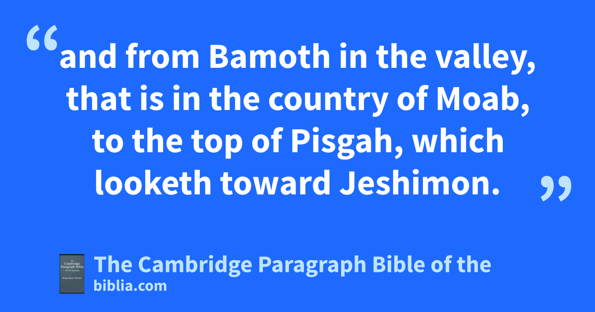 And from the wilderness they went to Mattanah: 19 and from Mattanah to Nahaliel: and from Nahaliel to Bamoth: 20 and from Bamoth in the valley, that is in the * country of Moab, to the top of * Pisgah, which looketh atoward * Jeshimon.