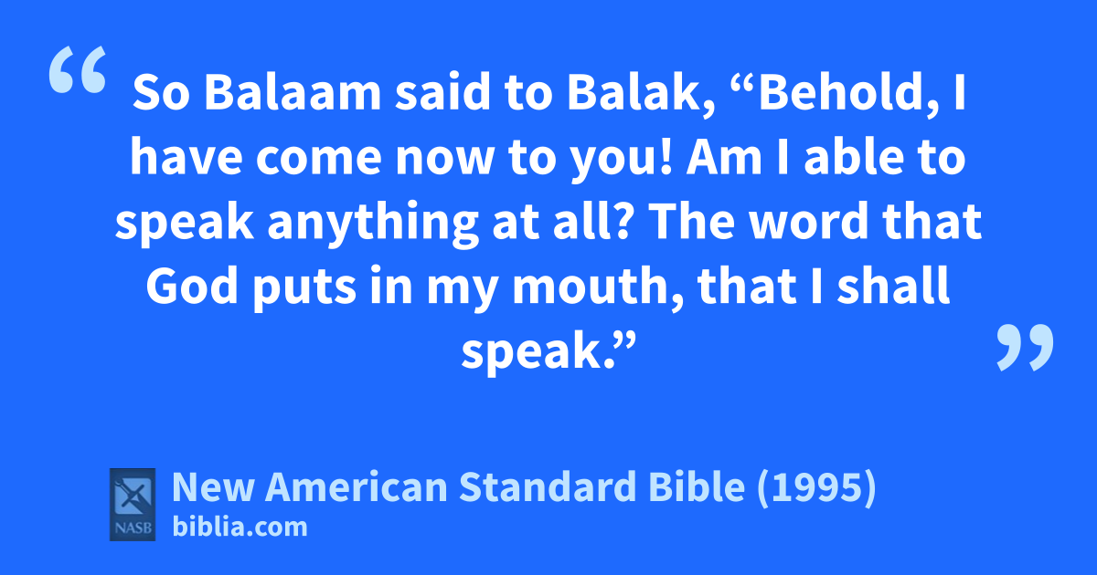 38 So Balaam said to Balak, “Behold, I have come now to you! aAm I able to speak anything at all? The word that God puts in my mouth, that I shall speak.”