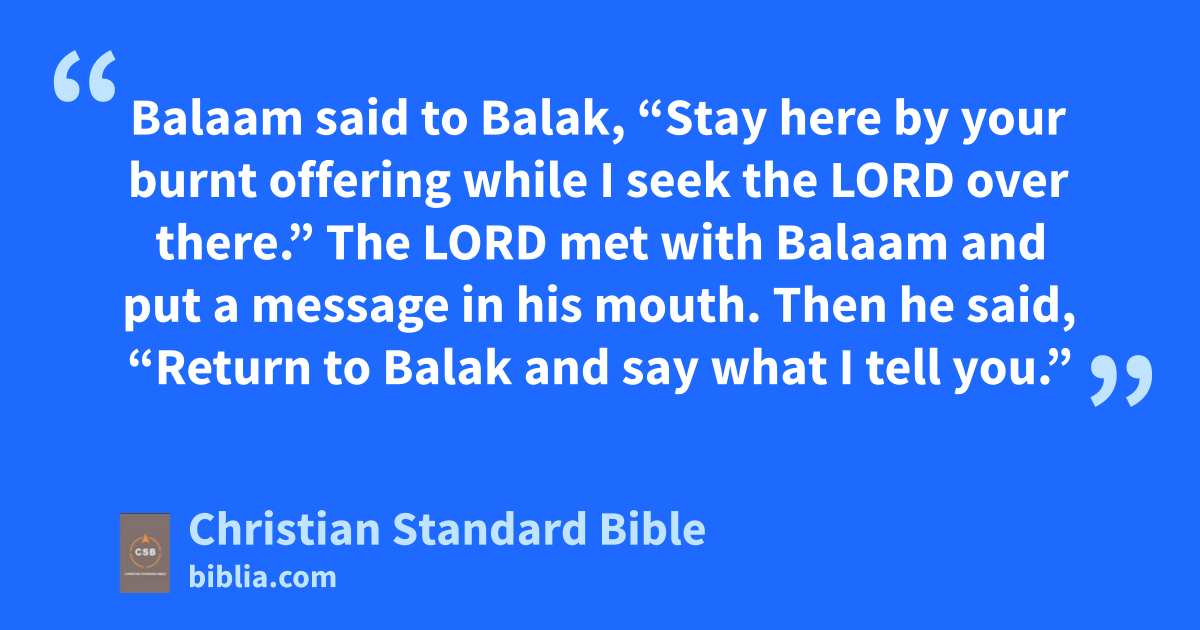 16 The Lord met with Balaam and put a message in his mouth. Then he said, “Return to Balak and say what I tell you.”