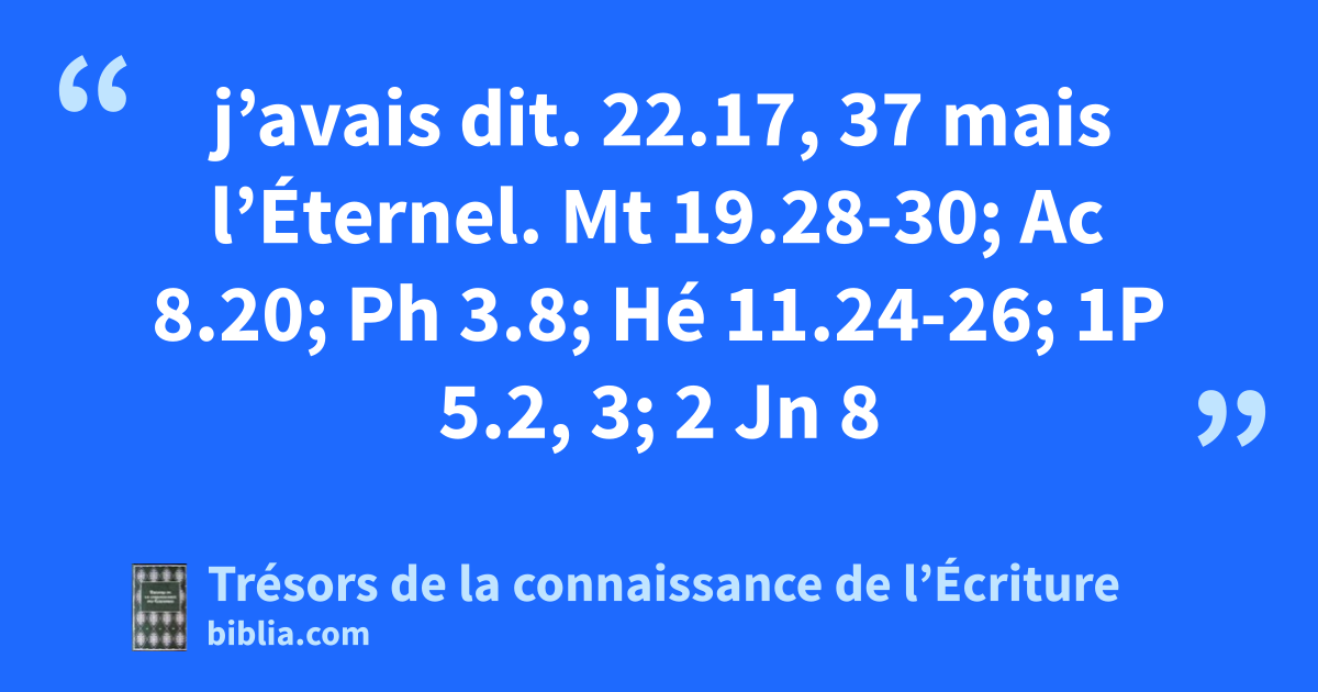 j’avais dit. 22.17, 37 mais l’Éternel. Mt 19.28-30; Ac 8.20; Ph 3.8; Hé 11.24-26; 1P 5.2, 3; 2 Jn 8