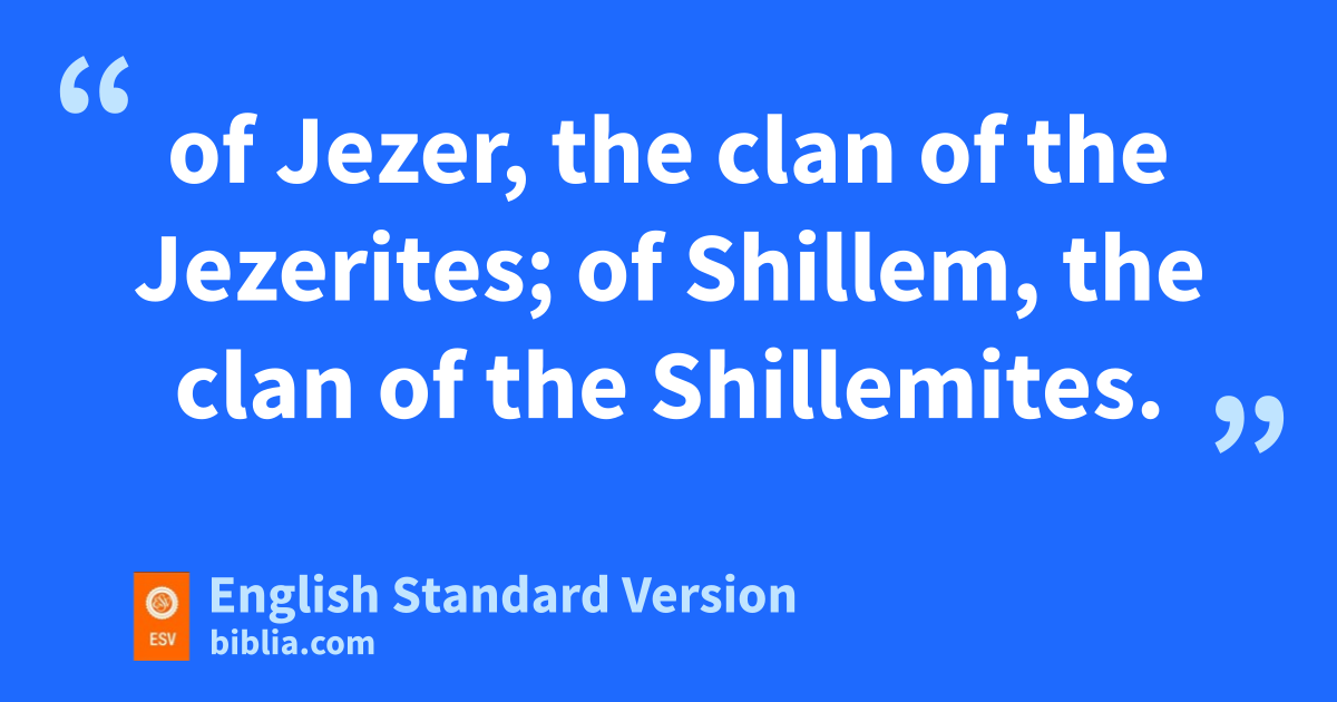 48 The sons of gNaphtali according to their clans: of Jahzeel, the clan of the Jahzeelites; of Guni, the clan of the Gunites; 49 of Jezer, the clan of the Jezerites; of Shillem, the clan of the Shillemites. 50 These are the clans of Naphtali according to their clans, and those listed were h45,400.