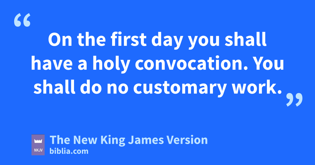 16 k‘On the fourteenth day of the first month is the Passover of the Lord. 17 lAnd on the fifteenth day of this month is the feast; unleavened bread shall be eaten for seven days. 18 On the mfirst day you shall have a holy 2convocation. You shall do no 3customary work. 19 And you shall present an offering made by fire as a burnt offering to the Lord: two young bulls, one ram, and seven lambs in their first year. nBe sure they are without blemish. 20 Their grain offering shall be of fine flour mixed with oil: three-tenths of an ephah you shall offer for a bull, and two-tenths for a ram; 21 you shall offer one-tenth of an ephah for each of the seven lambs; 22 also oone goat as a sin offering, to make 4atonement for you. 23 You shall offer these besides the burnt offering of the morning, which is for a regular burnt offering. 24 In this manner you shall offer the food of the offering made by fire daily for seven days, as a sweet aroma to the Lord; it shall be offered besides the regular burnt offering and its drink offering. 25 And pon the seventh day you shall have a holy convocation. You shall do no customary work.