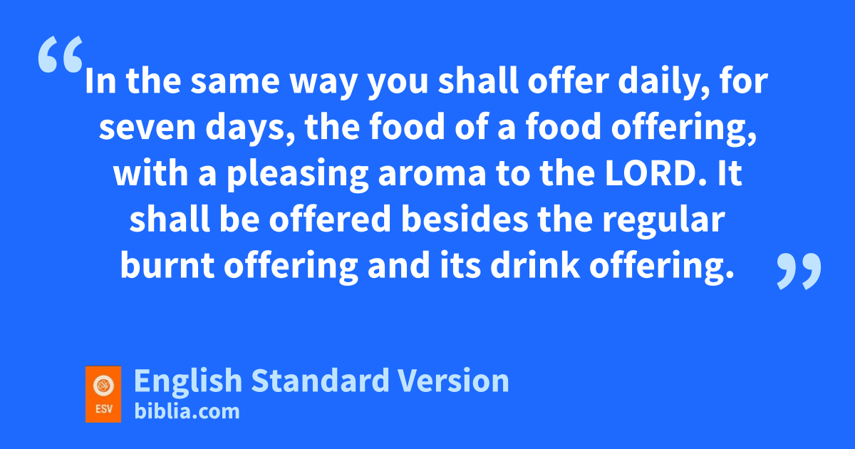 28 The Lord spoke to Moses, saying, 2 “Command the people of Israel and say to them, ‘My offering, vmy food for my food offerings, my wpleasing aroma, you shall be careful to offer to me at its appointed time.’ 3 xAnd you shall say to them, This is the food offering that you shall offer to the Lord: two male lambs a year old without blemish, day by day, as a regular offering. 4 The one lamb you shall offer in the morning, and the other lamb you shall offer at twilight; 5 also ya tenth of an ephah1 of fine flour for za grain offering, mixed awith a quarter of a hin2 of beaten oil. 6 It is a bregular burnt offering, which was ordained at Mount Sinai for a pleasing aroma, a food offering to the Lord. 7 Its drink offering shall be a quarter of a hin for each lamb. In the Holy Place you shall pour out a drink offering of strong drink to the Lord. 8 The other lamb you shall offer at twilight. Like the grain offering of the morning, and like its drink offering, you shall offer it as a food offering, with a pleasing aroma to the Lord.