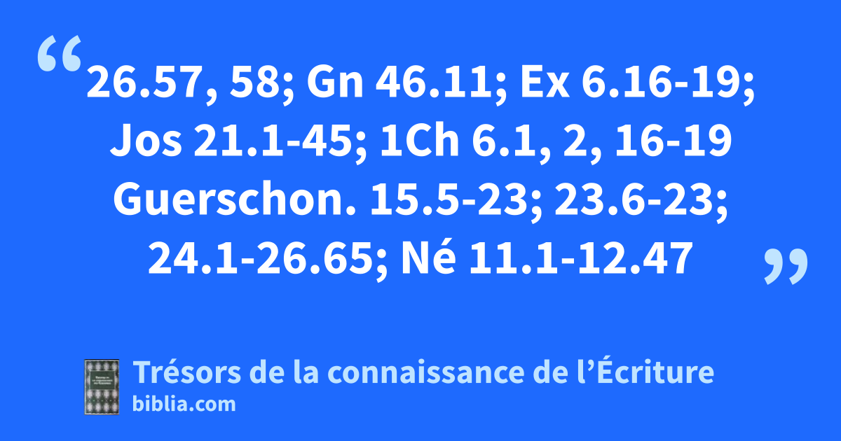 26.57, 58; Gn 46.11; Ex 6.16-19; Jos 21.1-45; 1Ch 6.1, 2, 16-19 Guerschon. 15.5-23; 23.6-23; 24.1-26.65; Né 11.1-12.47