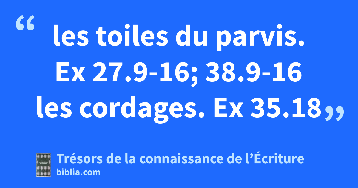 les toiles du parvis. Ex 27.9-16; 38.9-16 les cordages. Ex 35.18