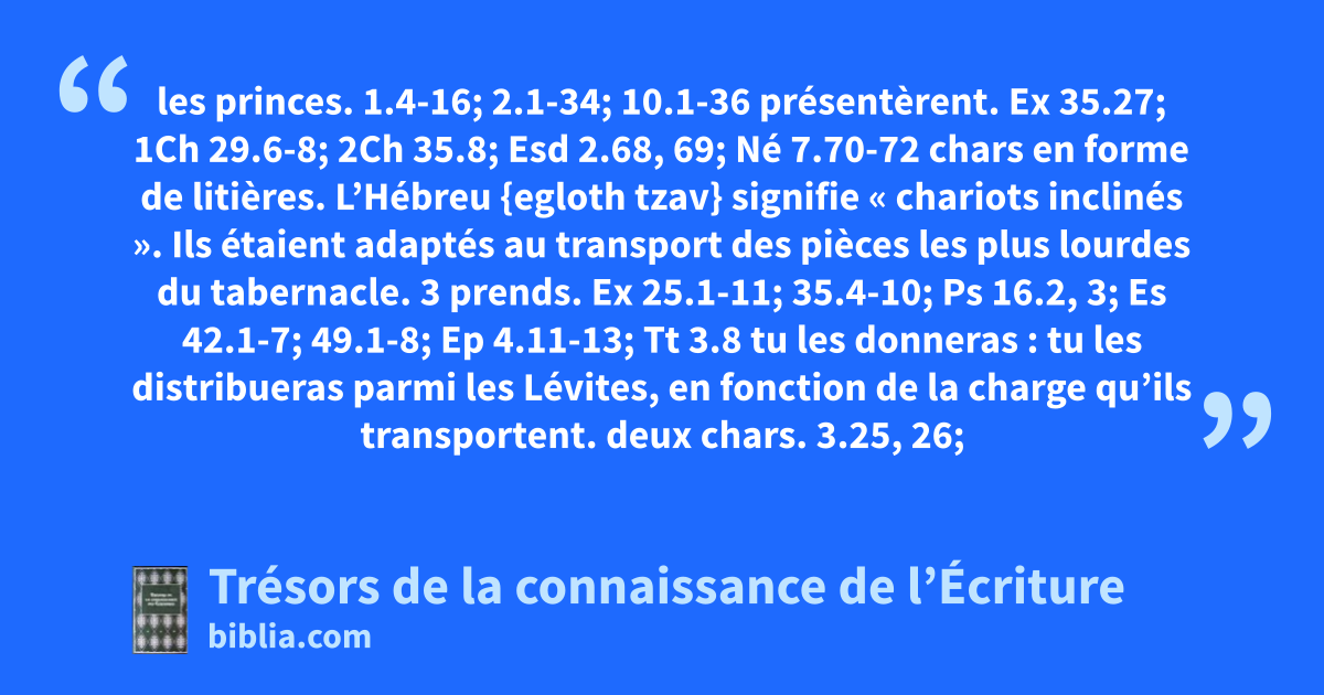 les princes. 1.4-16; 2.1-34; 10.1-36 présentèrent. Ex 35.27; 1Ch 29.6-8; 2Ch 35.8; Esd 2.68, 69; Né 7.70-72