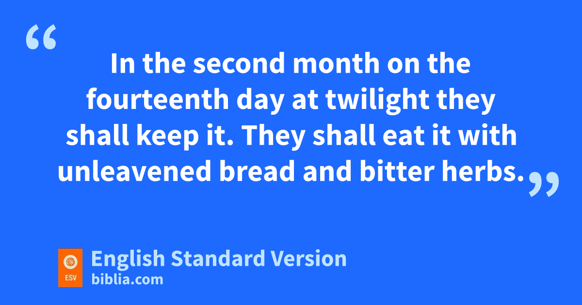 9 The Lord spoke to Moses, saying, 10 “Speak to the people of Israel, saying, If any one of you or of your descendants is unclean through touching a dead body, or is on a long journey, he shall still keep the Passover to the Lord. 11 jIn the second month on the fourteenth day at twilight they shall keep it. kThey shall eat it with unleavened bread and bitter herbs. 12 lThey shall leave none of it until the morning, mnor break any of its bones; naccording to all the statute for the Passover they shall keep it. 13 But if anyone who is clean and is not on a journey fails to keep the Passover, othat person shall be cut off from his people because he did not bring the Lord’s poffering at its appointed time; that man shall bear his sin. 14 And if a stranger sojourns among you and would keep the Passover to the Lord, according to the statute of the Passover and according to its rule, so shall he do. qYou shall have one statute, both for the sojourner and for the native.”