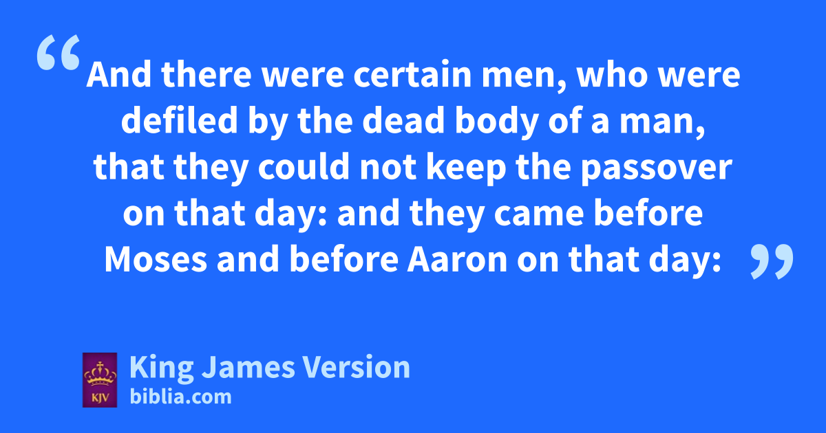 6 And there were certain men, who were cdefiled by the dead body of a man, that they could not keep the passover on that day: dand they came before Moses and before Aaron on that day: 7 And those men said unto him, We are defiled by the dead body of a man: wherefore are we kept back, that we may not offer an offering of the Lord in his appointed season among the children of Israel? 8 And Moses said unto them, Stand still, and eI will hear what the Lord will command concerning you.