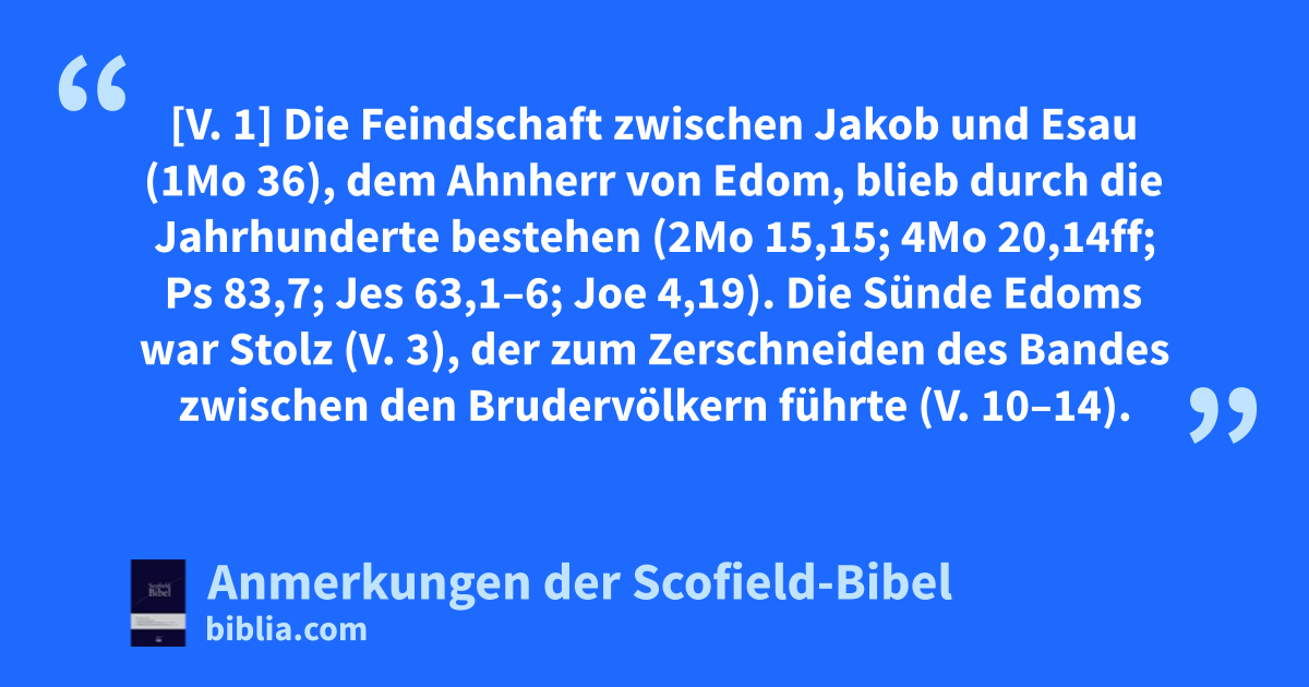 * Ob 1 Ge 36 Ex 15:15 Nu 20:14ff Nu 20:14ff Ps 83:7 Is 63:1–6 Joe 4:19 * Ob 3 * Ob 10–14