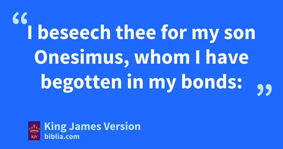 4 hI thank my God, making mention of thee always in my prayers, 5 ihearing of thy jlove and jfaith, which thou hast toward the Lord Jesus, and toward all saints; 6 that the communication of thy faith may become effectual kby the acknowledging of every good thing which is in you in Christ Jesus. 7 For lwe have great joy and mconsolation in thy love, because nthe bowels of the saints oare refreshed by thee, brother. 8 Wherefore, pthough I might be much bold in Christ to enjoin thee qthat which is convenient, 9 yet for love’s sake I rather rbeseech thee, being such an one as Paul sthe aged, and now also aa prisoner of Jesus Christ. 10 I rbeseech thee for ssmy son tOnesimus, uwhom I have begotten in my bonds: 11 which in time past was to thee vunprofitable, but now wprofitable to thee and to me: 12 whom I have xsent again: thou therefore receive him, that is, ymine own bowels: 13 whom I would have zretained with me, that ain thy stead he might have ministered unto me in bthe bonds of the gospel: 14 but without thy mind would I do nothing; that thy benefit should cdnot be as it were of necessity, dbut willingly. 15 eFor perhaps he therefore departed ffor a season, that thou shouldest greceive him for ever; 16 hnot now as a servant, but above a servant, ia brother beloved, specially to me, but how much more unto thee, both kin the flesh, and in the Lord? 17 If thou count me therefore la partner, receive him as myself. 18 If he hath wronged thee, or oweth thee ought, put that on mine account; 19 mI Paul have written it with mine own hand, I will repay it: nalbeit I do not say to thee how thou owest unto me even thine own self besides. 20 Yea, brother, let me ohave joy of thee in the Lord: prefresh my bowels in the Lord. 21 qHaving confidence in thy obedience I wrote unto thee, knowing that thou wilt also do more than I say. 22 But withal prepare me also ra lodging: for sI trust that tthrough your prayers I shall be given unto you. 23 ttThere salute thee uEpaphras, vmy fellowprisoner in Christ Jesus; 24 wMarcus, xAristarchus, yDemas, yLucas, zmy fellowlabourers. 25 zzThe grace of our Lord Jesus Christ be with your spirit. Amen.