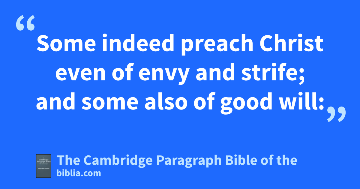 12 But I would ye should understand, brethren, that the things which happened unto me have fallen out rather unto the hfurtherance of the gospel; 13 so that imy bonds * in Christ kare manifest in all * the palace, and * in all other places; 14 and many of the brethren in the Lord, waxing confident by imy bonds, are much more bold to speak the word without fear. 15 Some indeed preach Christ leven of envy and strife; and some also of good will: 16 the one preach Christ mof contention, not sincerely, supposing to add affliction to imy bonds: 17 but the other of love, nknowing that oI am set for pthe defence of the gospel. 18 What then? notwithstanding, every way, whether in pretence, or in truth, Christ is preached; and I therein do rejoice, yea, and will rejoice. 19 For I know that this shall turn to my salvation qthrough your prayer, and the supply of rthe Spirit of Jesus Christ, 20 according to my searnest expectation and my hope, that tin nothing I shall be ashamed, but that uwith all boldness, as always, so now also Christ shall be magnified in my body, whether it be by life, or by death. 21 For to me wto live is Christ, and to die is gain. 22 But if I live in the flesh, this is the fruit of my labour: yet what I shall choose I wot not. 23 For xI am in a strait betwixt two, yhaving a desire zto depart, and to be with Christ; which is far better: 24 nevertheless to abide in the flesh is more needful for you. 25 And ahaving this confidence, I know that I shall babide and continue with you all for your cfurtherance and joy of faith; 26 that dyour rejoicing may be more abundant in Jesus Christ for me by my coming to you again.