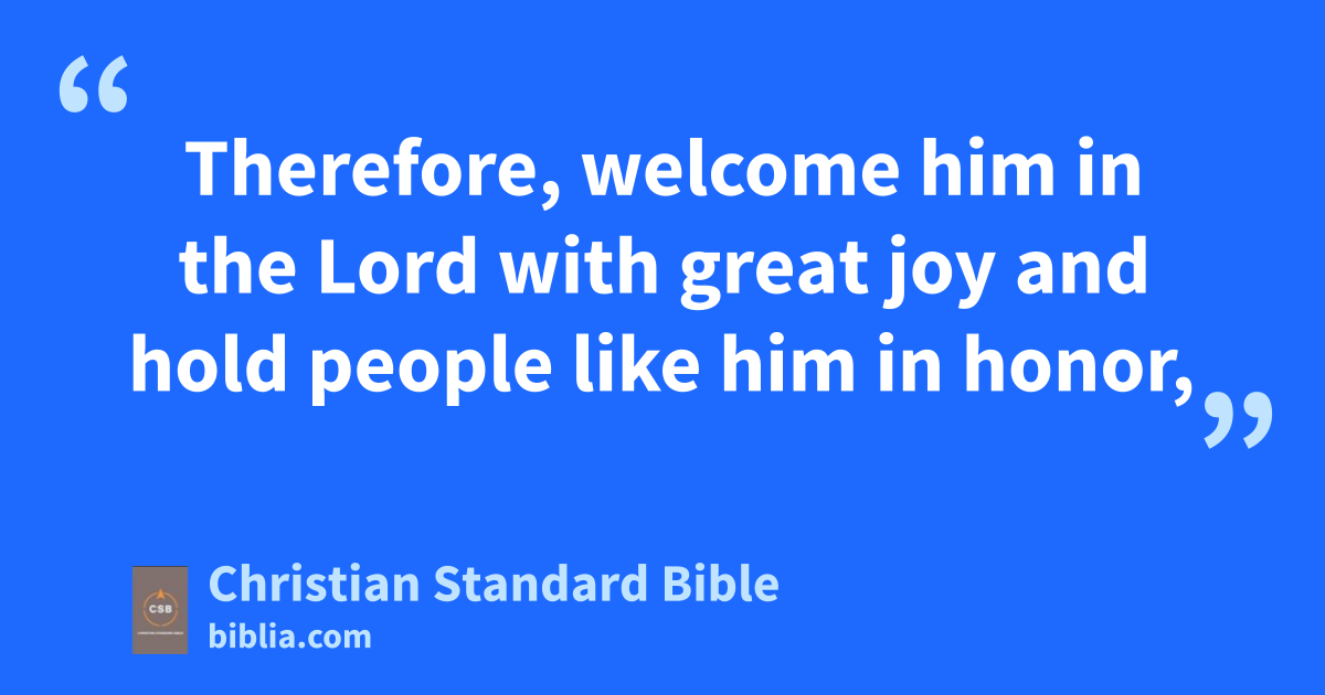 25 But I considered it necessary to send you Epaphroditusar—my brother, coworker, and fellow soldier, as well as your messenger and minister to my needas—26 since he has been longing for all of you and was distressed because you heard that he was sick. 27 Indeed, he was so sick that he nearly died. However, God had mercy on him, and not only on him but also on me, so that I would not have sorrow upon sorrow. 28 For this reason, I am very eager to send him so that you may rejoice again when you see him and I may be less anxious. 29 Therefore, welcome him in the Lord with great joy and hold people like him in honor, 30 because he came close to death for the workat of Christ, risking his life to make up what was lacking in your ministry to me.