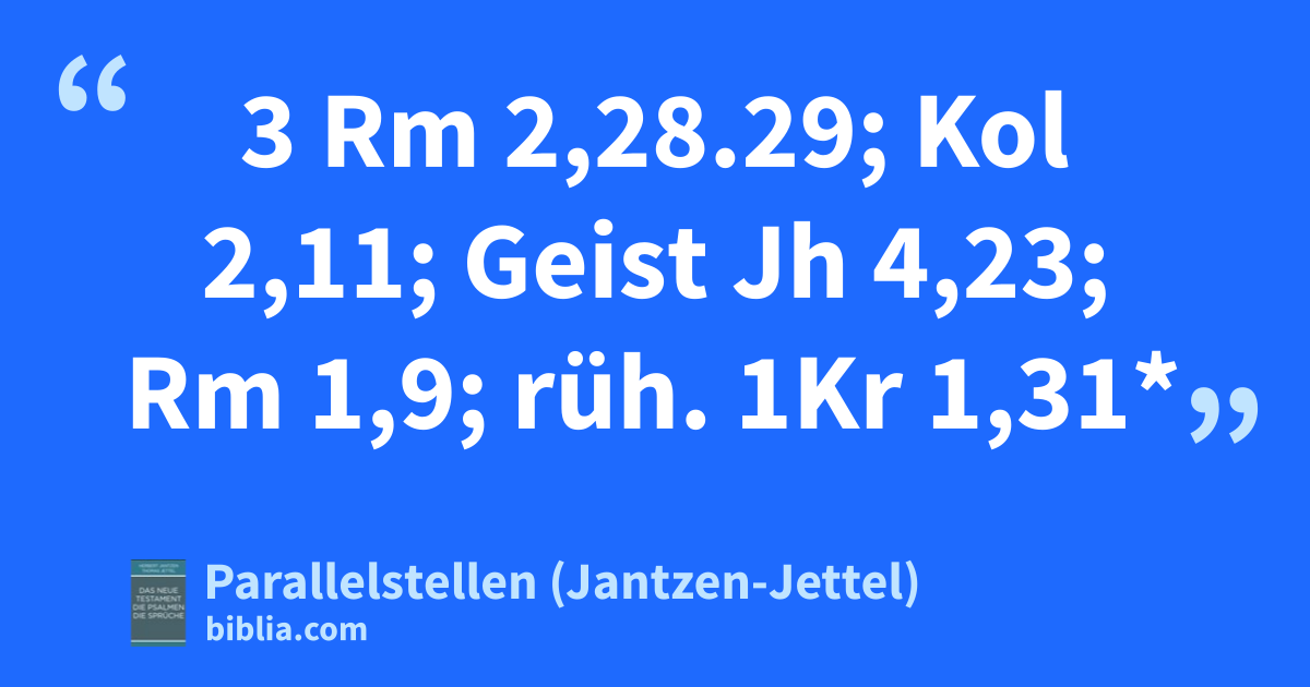 3 Rm 2,28.29; Kol 2,11; Geist Jh 4,23; Rm 1,9; rüh. 1Kr 1,31*