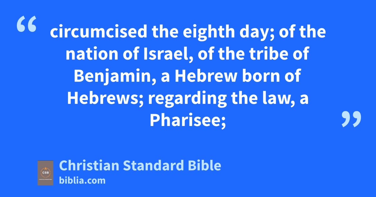 2 Watch out for the dogs, watch out for the evilav workers, watch out for those who mutilate the flesh. 3 For we are the circumcision,aw the ones who worship by the Spiritax of God, boast in Christ Jesus,ay and do not put confidence in the flesh—4 although I have reasons for confidence in the flesh. If anyone else thinks he has grounds for confidence in the flesh, I have more: 5 circumcised the eighth day;az of the nation of Israel,a of the tribe of Benjamin,b a Hebrew born of Hebrews; regarding the law,c a Pharisee; 6 regarding zeal,d persecutinge the church; regarding the righteousness that is in the law,f blameless.g