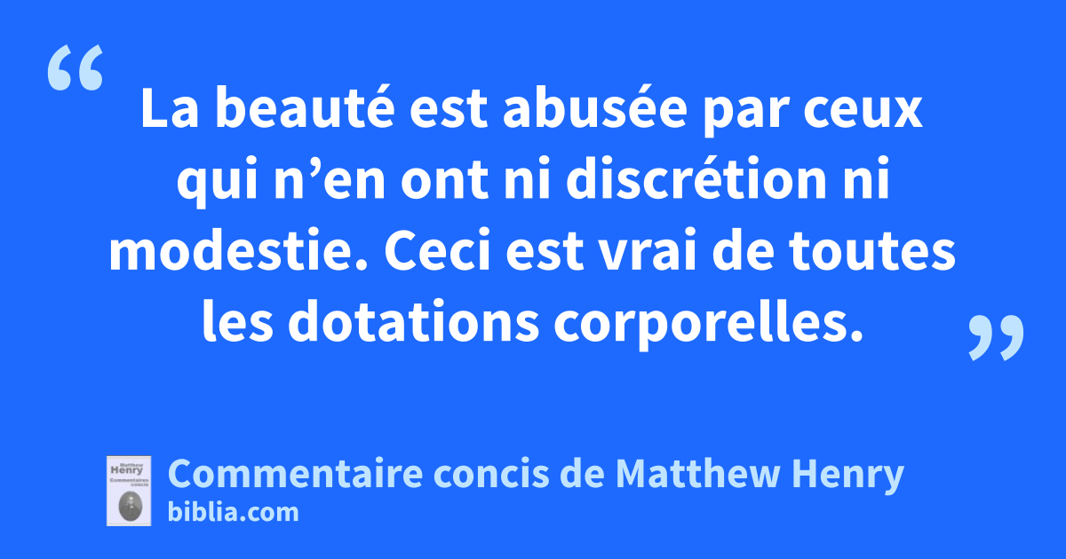 La beauté est abusée par ceux qui n’en ont ni discrétion ni modestie. Ceci est vrai de toutes les dotations corporelles.