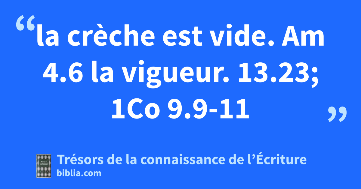 la crèche est vide. Am 4.6 la vigueur. 13.23; 1Co 9.9-11