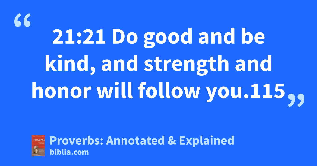 21:21 Do good and be kind, and strength and honor will follow you.115