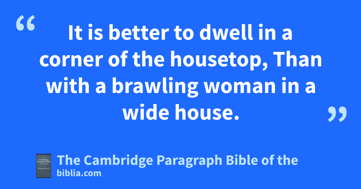 9 tIt is better to dwell in a ucorner of the housetop,