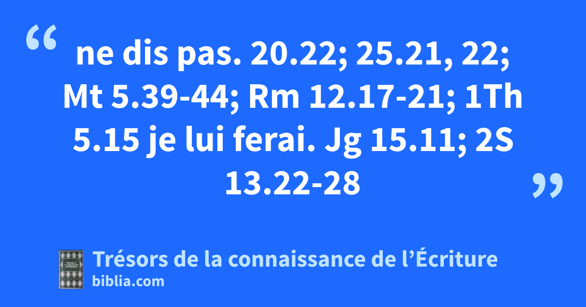 ne dis pas. 20.22; 25.21, 22; Mt 5.39-44; Rm 12.17-21; 1Th 5.15 je lui ferai. Jg 15.11; 2S 13.22-28