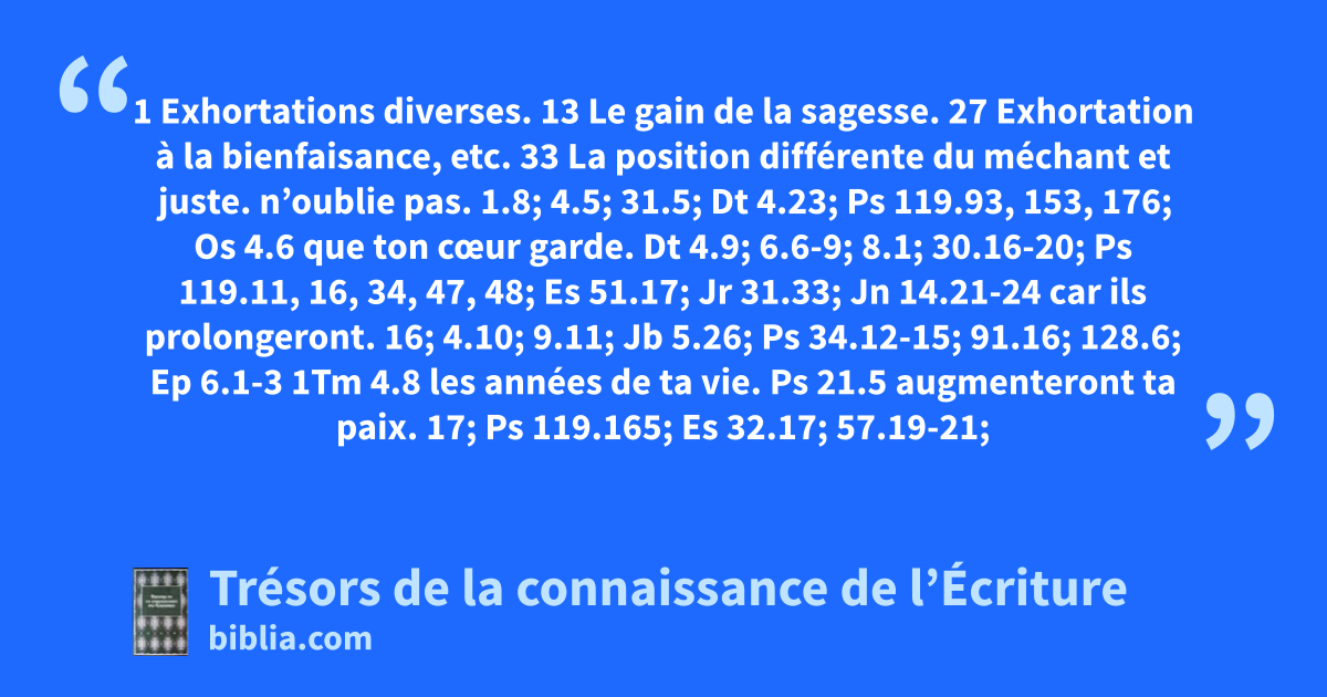 n’oublie pas. 1.8; 4.5; 31.5; Dt 4.23; Ps 119.93, 153, 176; Os 4.6 que ton cœur garde. Dt 4.9; 6.6-9; 8.1; 30.16-20; Ps 119.11, 16, 34, 47, 48; Es 51.17; Jr 31.33; Jn 14.21-24