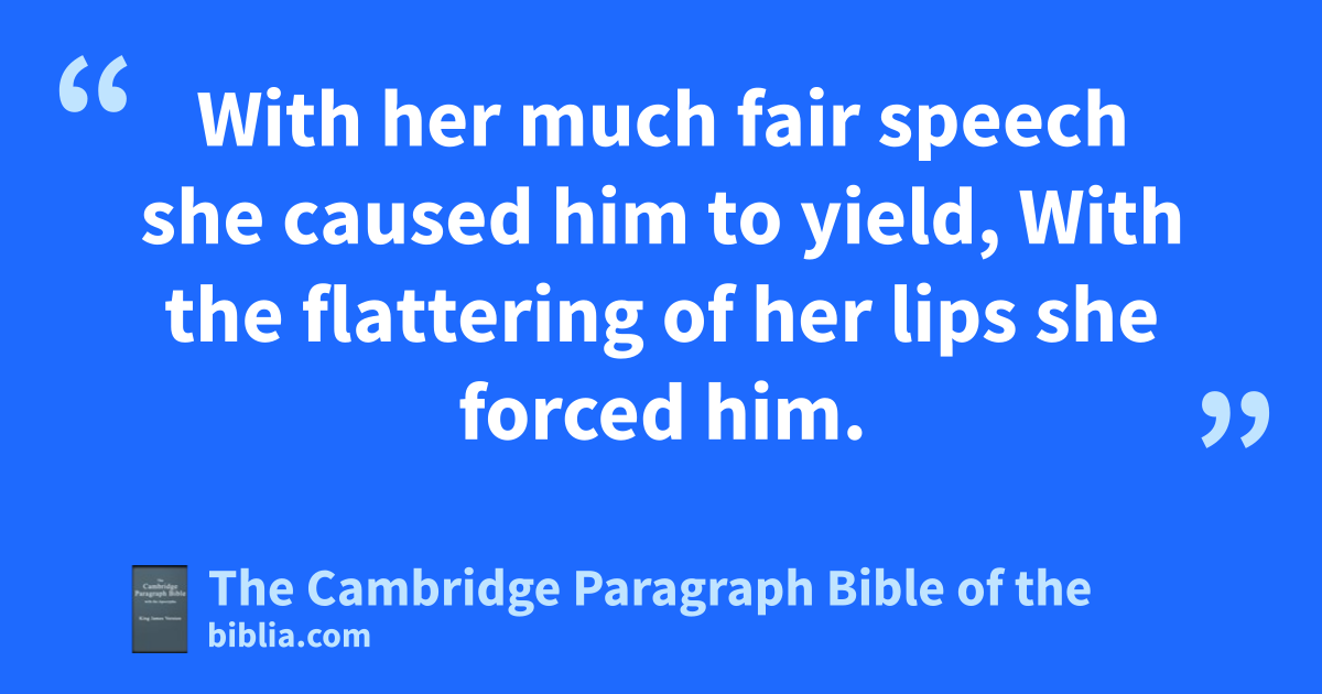 21 With her much ffair speech she caused him to yield,