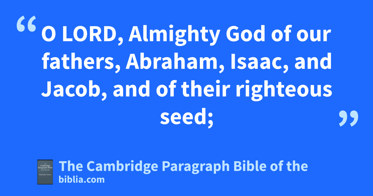 * O Lord, aAlmighty God of our fathers, Abraham, Isaac, and Jacob, and of their grighteous seed; 2 bwho hast made heaven and earth, with all the ornament thereof; 3 bwho hast bound the sea by the word of thy commandment; who hast shut up the deep, and sealed it by thy terrible and glorious name; 4 whom all men fear, and tremble before thy power; 5 for the majesty of thy glory cannot be borne, and thine angry threatening towards sinners is importable; 6 but thy merciful promise is unmeasurable and cunsearchable; 7 for thou art the most high Lord, of degreat compassion, longsuffering, very merciful, eand repentest of the evils of men: Thou, O Lord, according to thy great goodness hast promised repentance and forgiveness to them that have sinned against thee: and of thine infinite mercies hast appointed frepentance unto sinners, fthat they may be saved.