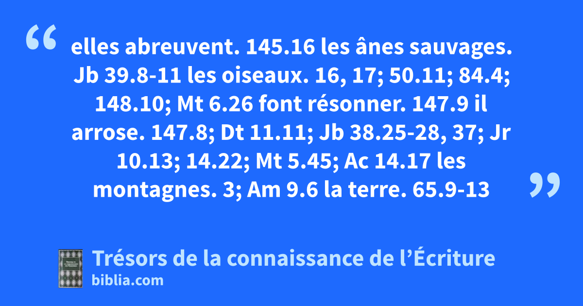 elles abreuvent. 145.16 les ânes sauvages. Jb 39.8-11