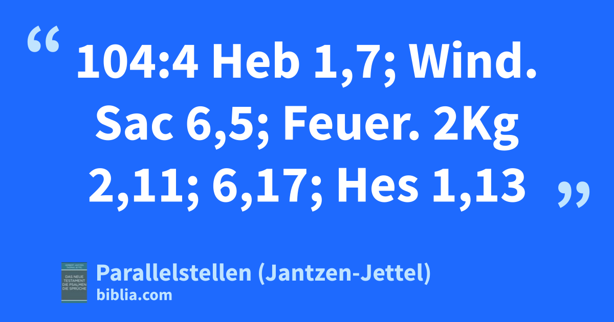 104:4 Heb 1,7; Wind. Sac 6,5; Feuer. 2Kg 2,11; 6,17; Hes 1,13