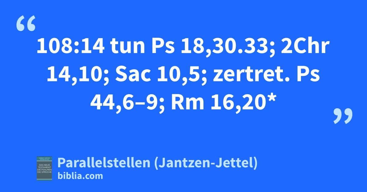 108:7 Ps 108,7–14: 60,7–14; Gelie. 5M 7,7.8; Rechte Ps 17,7; 20,7; 118,15.16; 2M 15,6