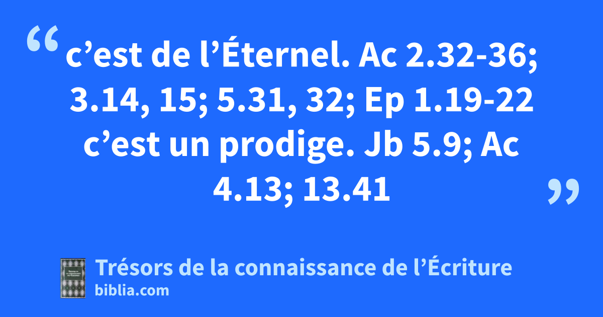 c’est de l’Éternel. Ac 2.32-36; 3.14, 15; 5.31, 32; Ep 1.19-22 c’est un prodige. Jb 5.9; Ac 4.13; 13.41