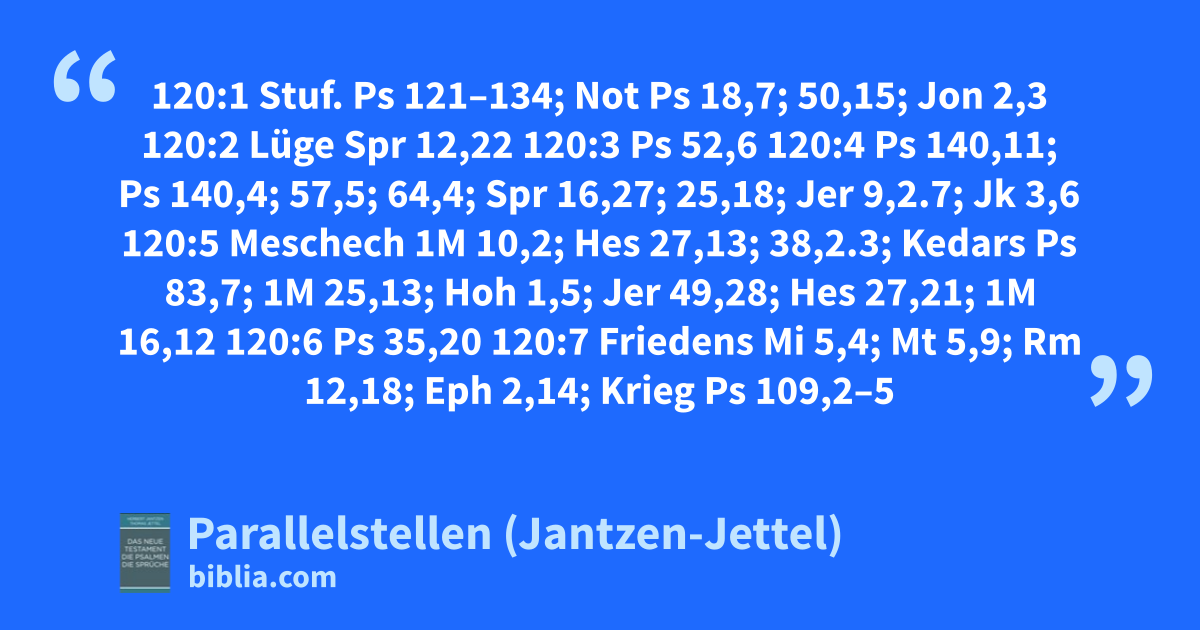 120:7 Friedens Mi 5,4; Mt 5,9; Rm 12,18; Eph 2,14; Krieg Ps 109,2–5