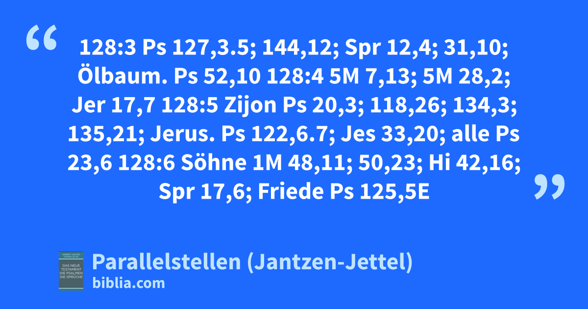 128:5 Zijon Ps 20,3; 118,26; 134,3; 135,21; Jerus. Ps 122,6.7; Jes 33,20; alle Ps 23,6