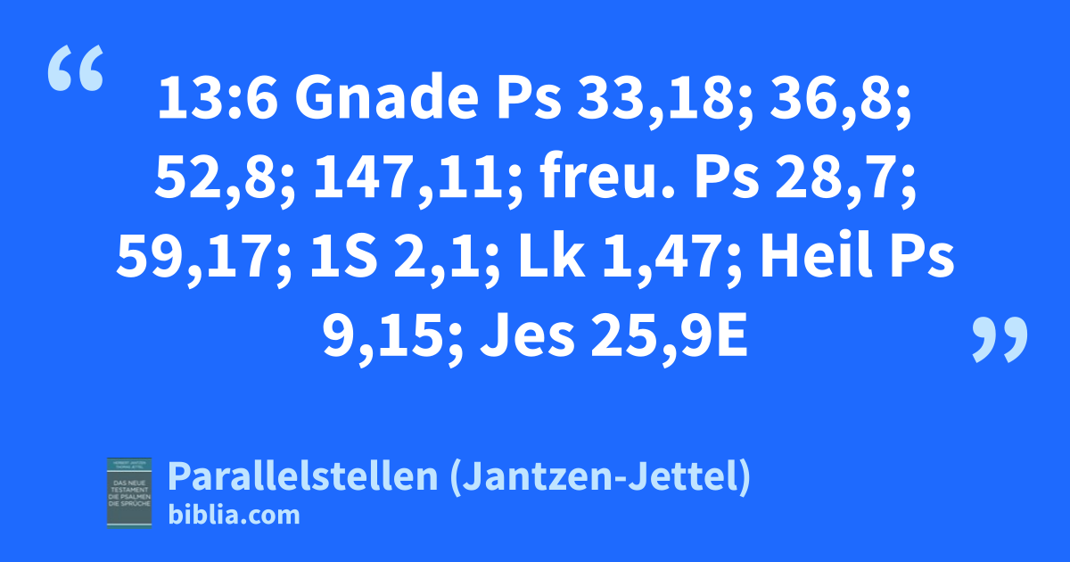13:6 Gnade Ps 33,18; 36,8; 52,8; 147,11; freu. Ps 28,7; 59,17; 1S 2,1; Lk 1,47; Heil Ps 9,15; Jes 25,9E