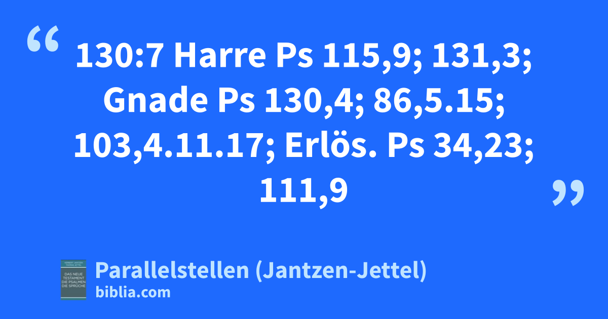 130:7 Harre Ps 115,9; 131,3; Gnade Ps 130,4; 86,5.15; 103,4.11.17; Erlös. Ps 34,23; 111,9