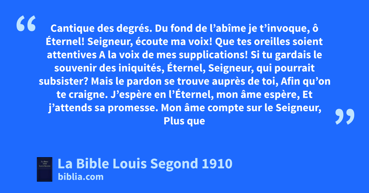 About La Bible Louis Segond 1910Publiée à l'origine en 1888 par Louis Segond par subvention de la Compagnie des pasteurs de Genève, la version de 1910 en constitue la première révision majeure après sa mort. Elle demeure l'une des Bibles françaises les plus utilisées de nos jours. |