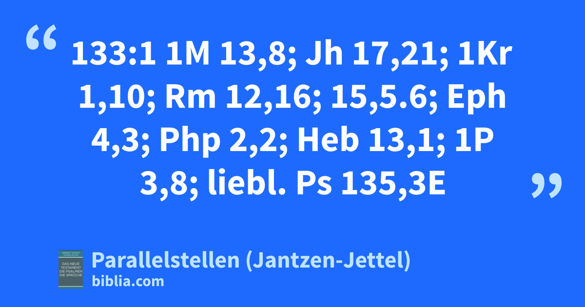 133:1 1M 13,8; Jh 17,21; 1Kr 1,10; Rm 12,16; 15,5.6; Eph 4,3; Php 2,2; Heb 13,1; 1P 3,8; liebl. Ps 135,3E