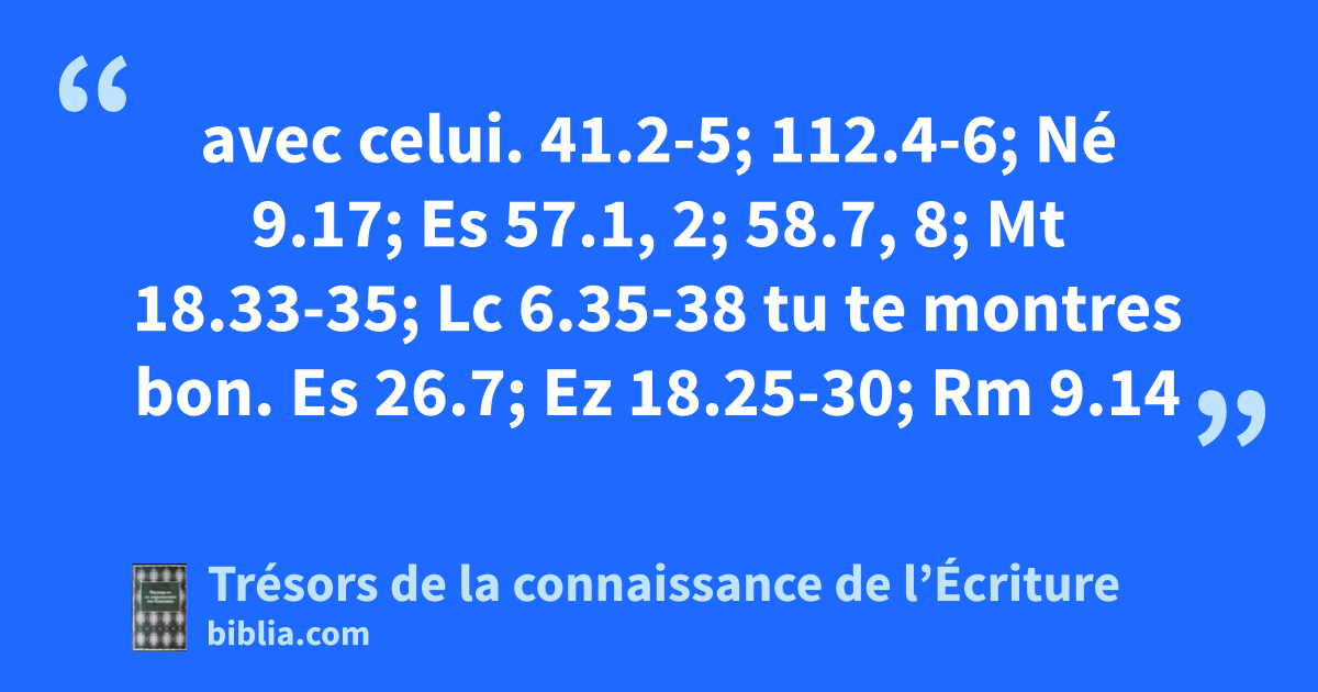 avec celui. 41.2-5; 112.4-6; Né 9.17; Es 57.1, 2; 58.7, 8; Mt 18.33-35; Lc 6.35-38 tu te montres bon. Es 26.7; Ez 18.25-30; Rm 9.14