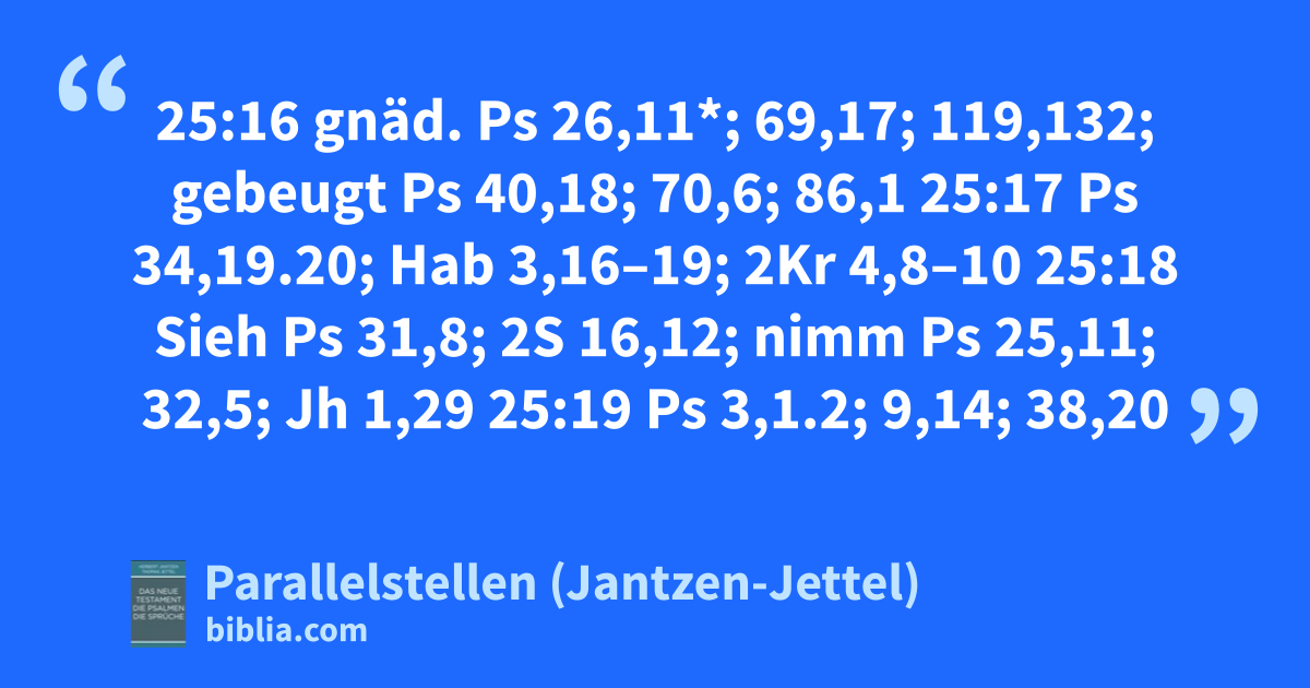25:8 Gut Ps 34,9; 86,5; 100,5*; 119,68; Lk 18,19; gerade Ps 92,16; Jes 26,7; Weg Jk 1,5*