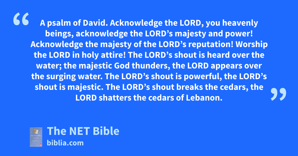 29:2 Acknowledge the majesty of the Lord’s reputation!3