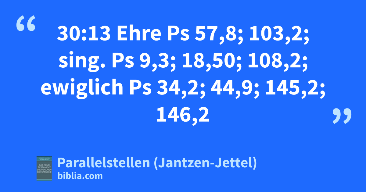 30:13 Ehre Ps 57,8; 103,2; sing. Ps 9,3; 18,50; 108,2; ewiglich Ps 34,2; 44,9; 145,2; 146,2