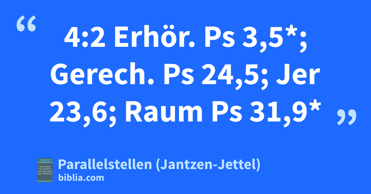 4:2 Erhör. Ps 3,5*; Gerech. Ps 24,5; Jer 23,6; Raum Ps 31,9*