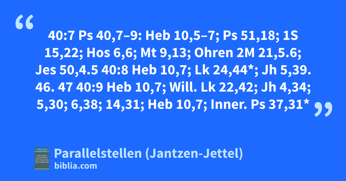 40:7 Ps 40,7–9: Heb 10,5–7; Ps 51,18; 1S 15,22; Hos 6,6; Mt 9,13; Ohren 2M 21,5.6; Jes 50,4.5