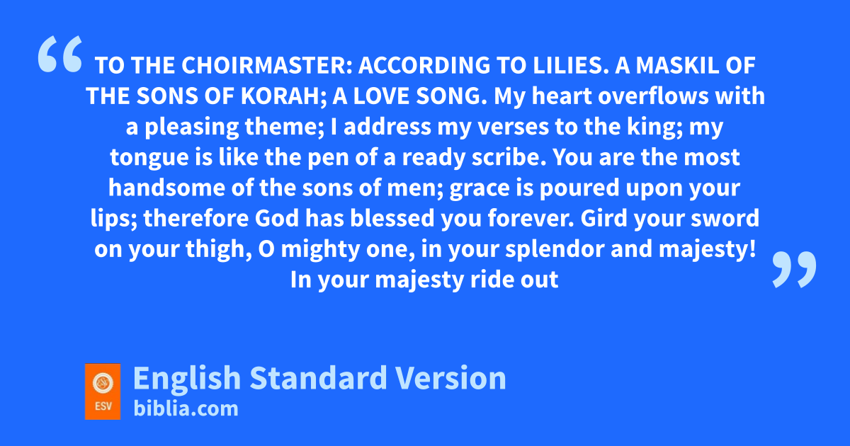 45 To the choirmaster: according to Lilies. A Maskil1 of vthe Sons of Korah; a love song.