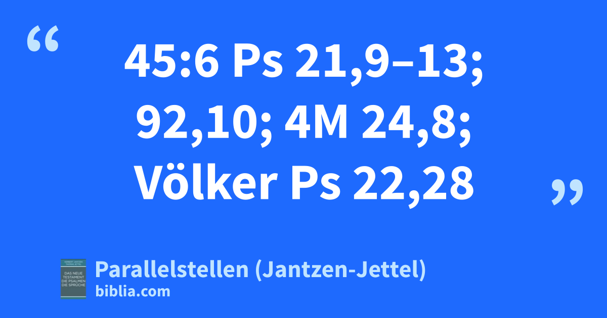 45:7 Ps 45,7.8: Heb 1,8.9; Thron Ps 93,2; 2S 7,13; Jes 9,6; Lk 1,33; Gott Jh 1,1; 20,28*; Rm 9,5*; Aufri. Ps 45,5; 98,9; Jes 11,3–5; Jer 23,5; 33,15.16; Off 19,11*
