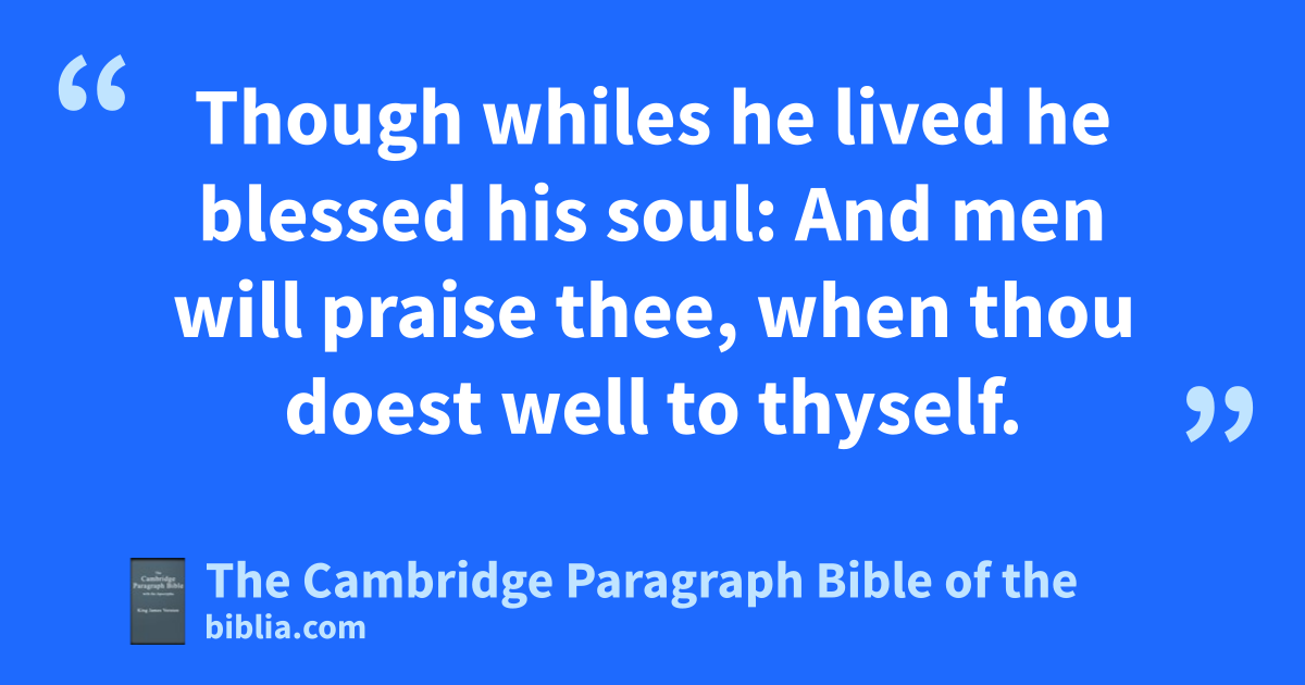 And men will praise thee, when thou doest well to thyself.