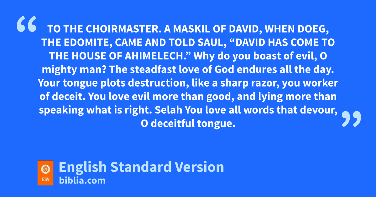 52 To the choirmaster. A Maskil1 of David, when cDoeg, the Edomite, came and told Saul, “David has come to the house of Ahimelech.”